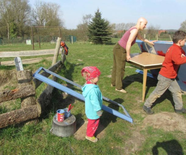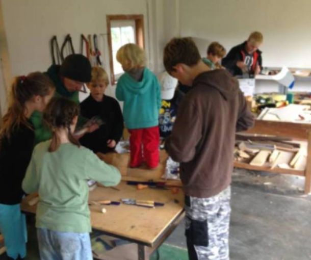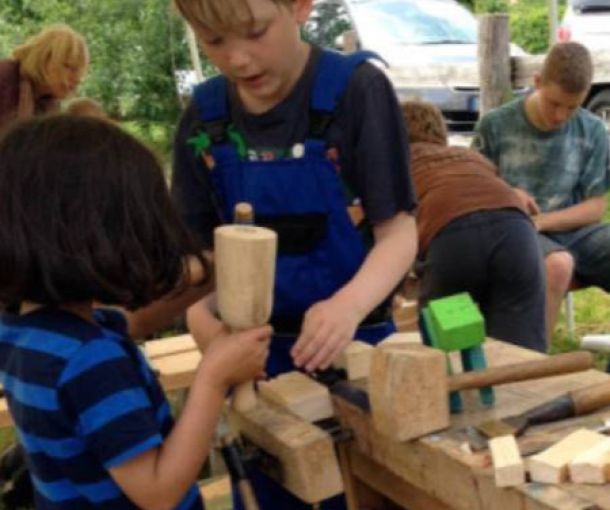 Wir wollen bei gutem Wetter draußen an großformatigen Holzsachen probieren, wie wir Form und Ausdruck in ein hartes Material wie Holz bekommen. Wenn es regnet, nutzen wir die Zeit zum Zeichnen, kleinformatigem Arbeiten und zum Fabulieren in der Werkstatt. Schnitzen übt Geduld, macht Muskeln und Spaß.