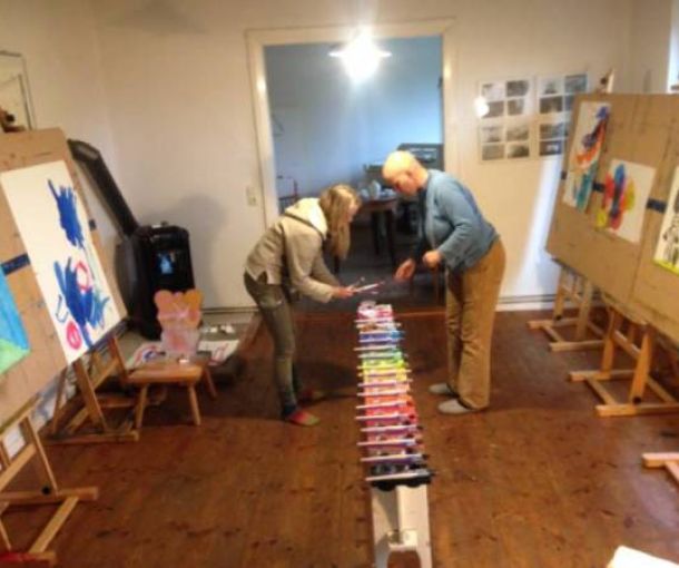 An Staffeleien malen wir intuitiv und unkommentiert mit leuchtenden Guache-Farben auf Papier. Es geht hier nicht ums Können, sondern mit dem in Kontakt zu treten, was in uns ist und einfach zu malen...