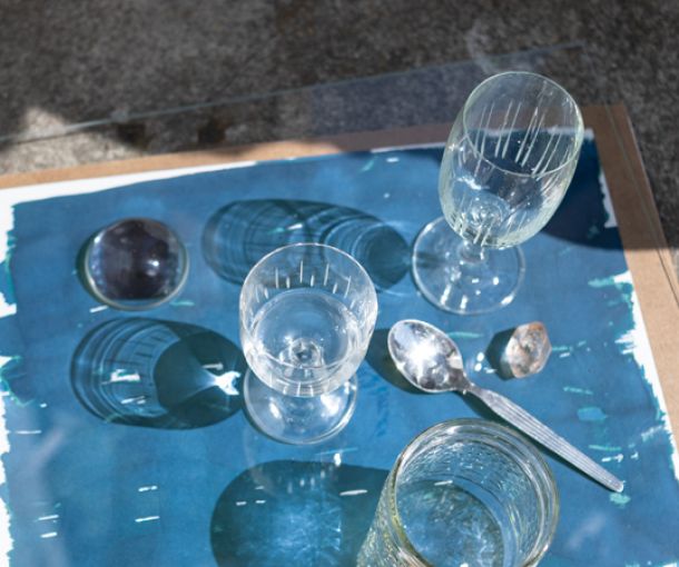 Cyanotypie ist ein historisches fotografisches Verfahren. Es wird auch Eisenblaudruck genannt. Licht trifft auf Chemie trifft auf Papier, Bilder in blauen Farbtönen entstehen.