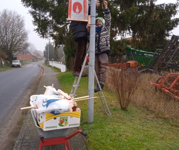 Danke an Alle, die geholfen haben, damit die Bilder an den Straßenlaternen befestigt werden können.