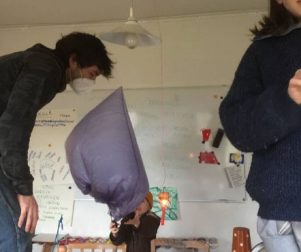 Wir arbeiten mit Holz, Metall, Gummi – wir schmieden, löten, schneiden, kleben, hobeln, sägen. Wir bauen Katapulte, Seilbahnen, Flugobjekte und Murmelbahnen.