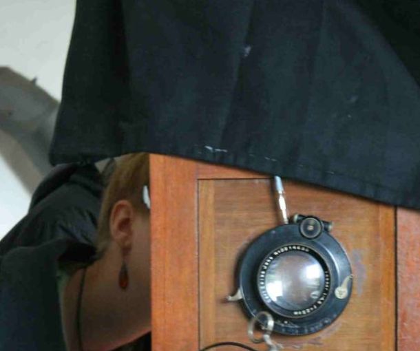 Wir nahmen das wörtlich und suchten nach dem guten Portrait. Wir erweckten eine alte Atelierkamera (die mit dem schwarzen Tuch), probierten uns an gebauten Lochbildkameras und einer Laufbodenkamera aus Holz im großen Format, untersuchten die Verschiedenheiten der jeweiligen entstandenen Bilder.