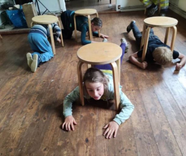 - sich mit Stühlen und Pappkartons etwas ausdenken