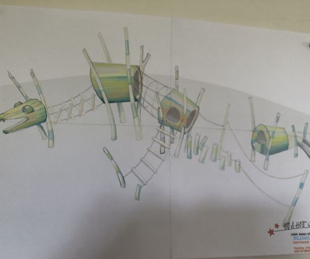 Janne und Thor "Hü und Hott - Spielskulpturen" hatten die Teile für den Kleinkindbereich nach den gemeinsam erdachten Entwürfen vorbereitet.