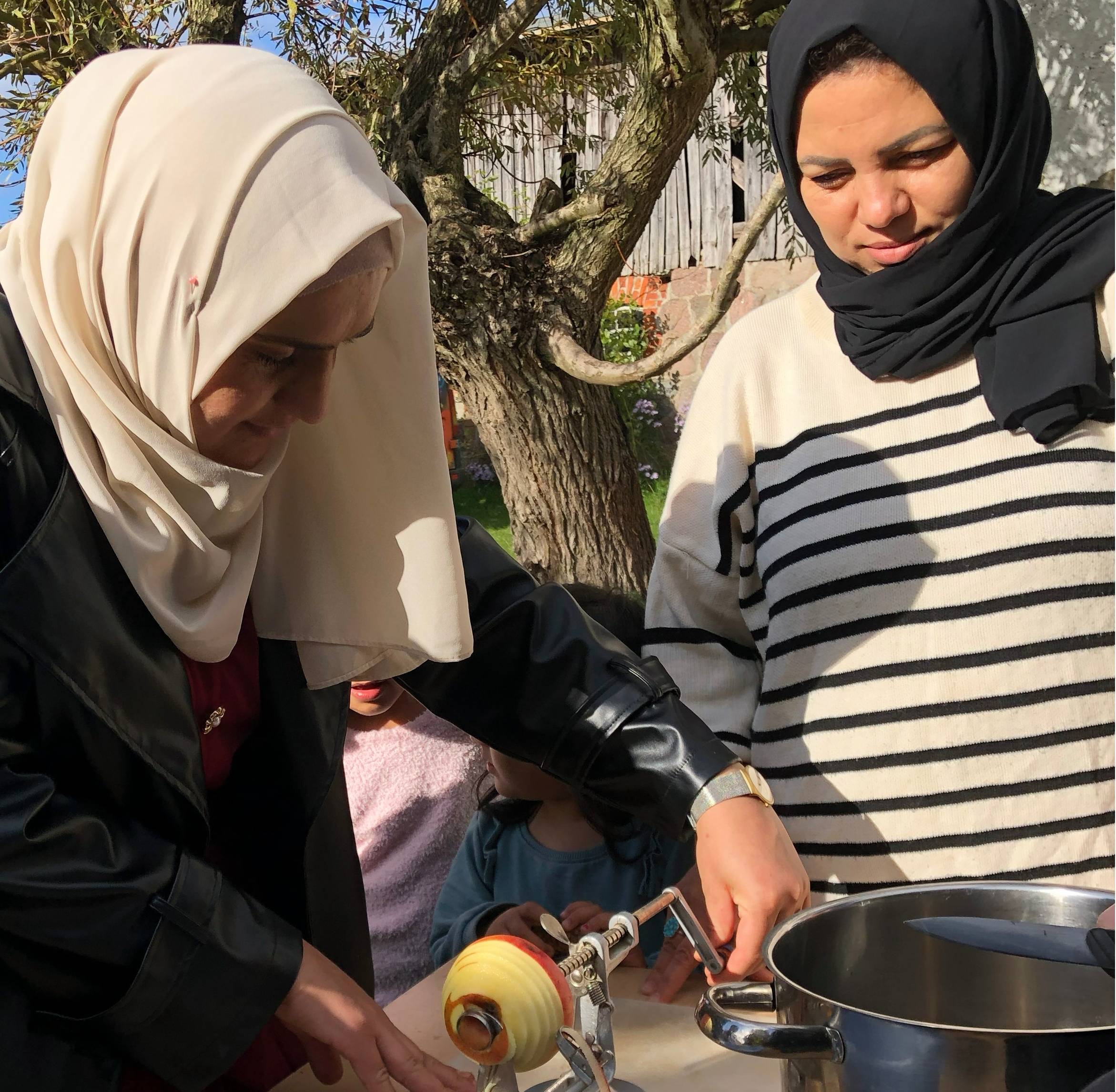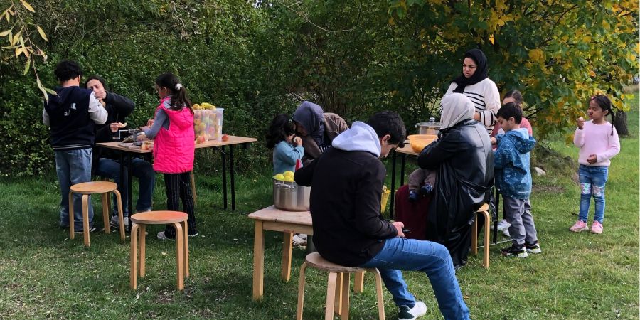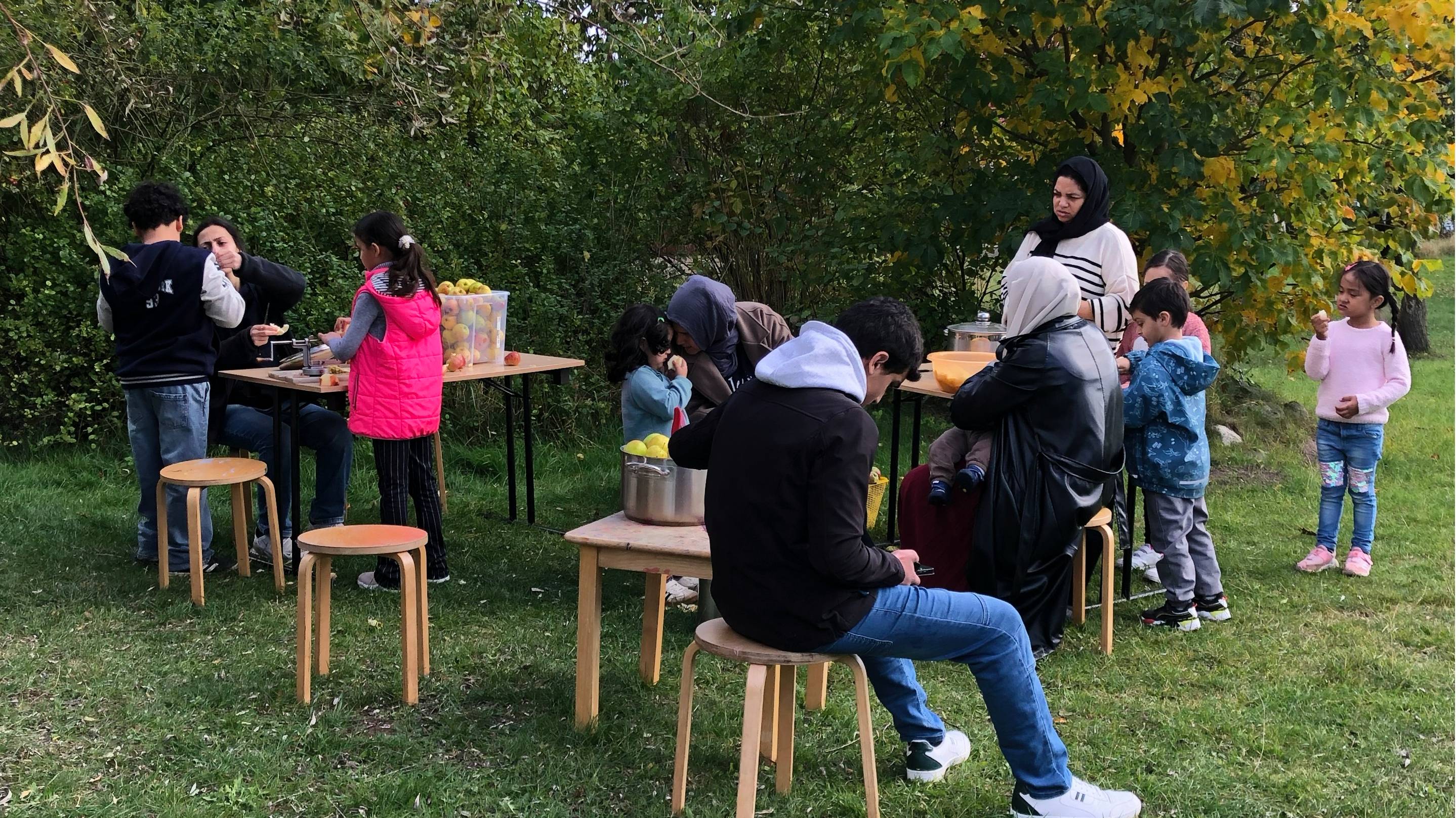 Wir sammelten gemeinsam Äpfel und kochten Apfelmus, Unser Ziel lautete: alle können ein Glas Apfelmus mit nach Hause nehmen.