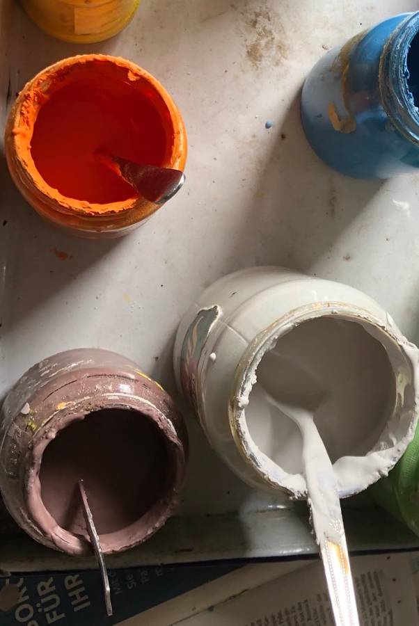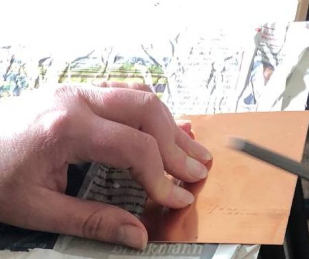 Seit über 3500 Jahren gibt es die Technik des Emaillierens. Mit Emailfarbe wird auf ein Metallstück gemalt. Dann wird das Ganze in einem Ofen bei 840 Grad Celsius und kurzer Brenndauer geschmolzen. Die Farben verändern sich während des Brennens.